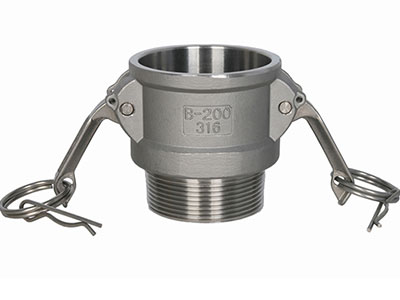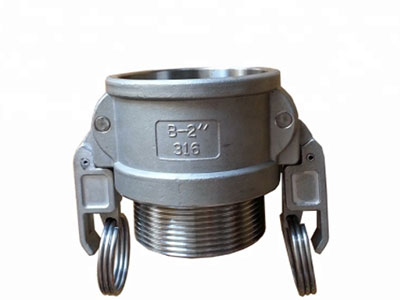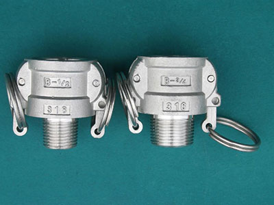 B型快速接頭兩頭各有一個拉耳,屬于母頭,它一頭是與公頭連接直接卡的,另一頭則是外螺紋連接。